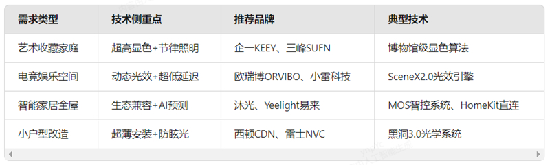 针对中国住宅层高多样性(2.4-3.5m),头部品牌通过光学设计与安装套件的创新,破解行业痛点。