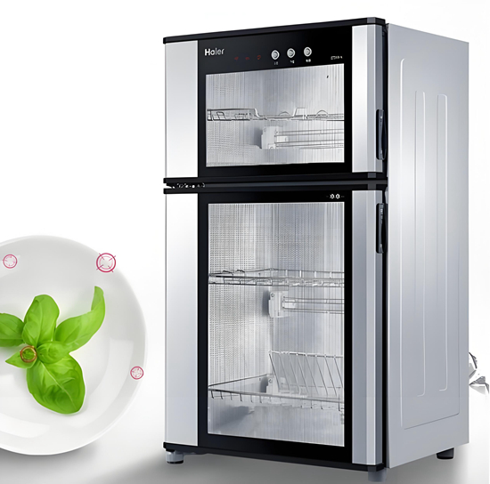2. 海尔消毒柜:海尔消毒柜以其大容量和智能化特点受到消费者的喜爱。部分高端型号还配备了智能传感技术,能够根据餐具的湿度和温度自动调节消毒时间和温度,既节能环保又高效。