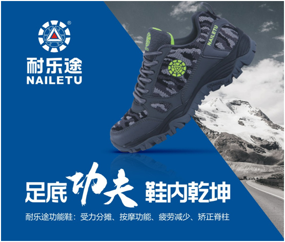 耐乐途功能鞋独具新材料和特殊结构体,采用超磁能材料、高分子纳米材料精制而成,让脚底板每一步都在按摩运动。其能激活失眠小肌肉群、促进血液微循环,调节关节和骨骼状态,让全身经络顺畅无碍、气血充盈、消除疲劳,激活身体自愈能量。