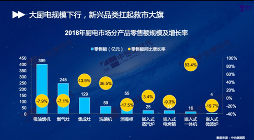 中怡康数据显示,2018厨电行业市场首现负增长,其中洗碗机成绩“厨类拔萃”,整体零售额为59亿元,同比增长了36.5%。来自天猫数据显示,2018年,天猫洗碗机品类成交额增幅达行业整体近2倍,成为洗碗机行业销量第一平台。