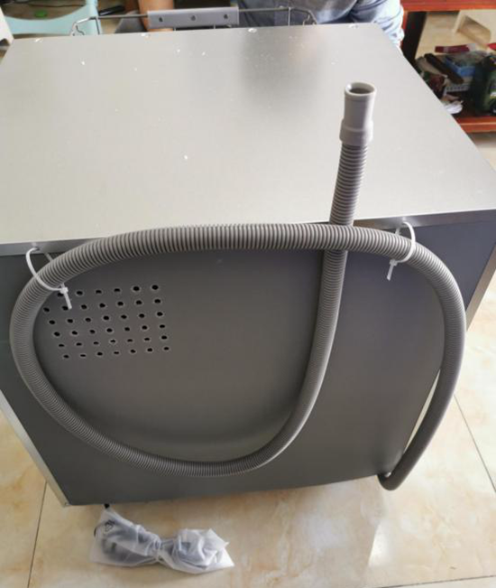 等了几天宝贝就到了,有人送货上门省了不少麻烦,包装仔细,两个人拆货,产品配件和保修凭证一应俱全,外观都采用黑灰色金属面,万能的厨房搭配色。下面是开箱后的产品和一些配件,主要是进水管,筷子网兜,洗碗专用盐的漏勺