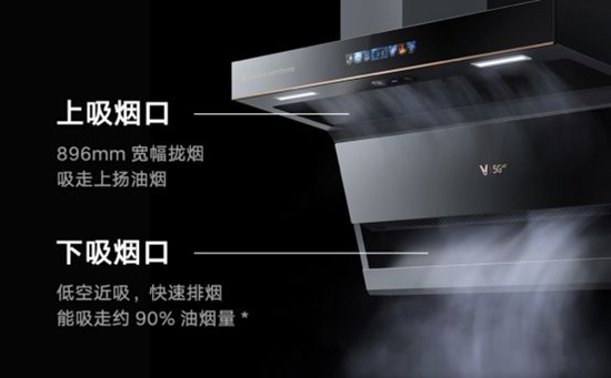 云米Cross2 X1油烟机采用了“7”型双烟口的上下双吸策略,上下两个烟口可实现896mm宽幅拢烟,配合400Pa的超大静压能够快速将油烟排出,有效避免了倒灌、跑烟等情况。这让用户在厨房做菜时可以完全放心烟机的吸烟功能,专注制作菜肴。