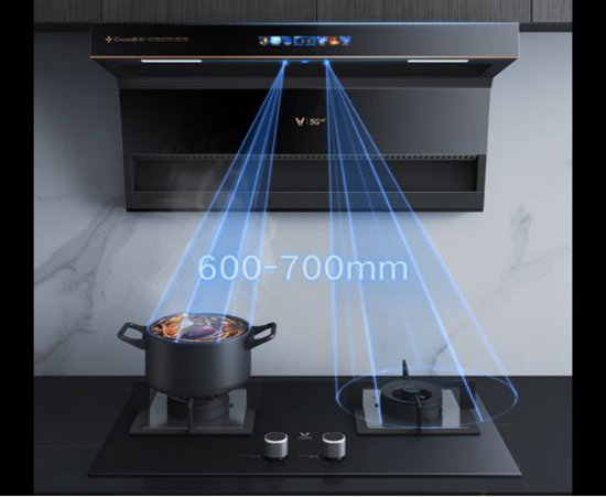 在对油烟的处理上,云米AI油烟机Cross2 X1则加入了AI智目吸功能,配备2枚智能红外传感器识别油烟浓度和大小,探测范围宽度达到700mm。通过油烟曲线和多维AI算法可以进一步分析预判油烟大小,每秒会进行多达60次的识别判断,从而自动调节风量吸走油烟,实现烟大风就大的自动调节,让厨房排烟更干净,即便遇到爆炒油烟四起也不怕慌乱。