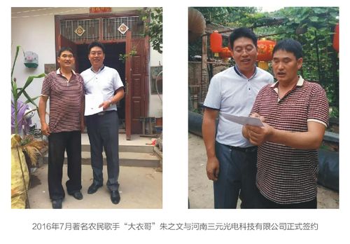 除了在远红外辐热技术上的领先姿态,三元光电在品牌宣传上也不遗余力。2016年7月,著名农民歌手“大衣哥”朱之文正式与河南三元光电科技有限公司签约,成为三元光电·远红外品牌代言人。作为新型电热行业的开创者,三元光电始终坚持“环保节能,温暖民生”的核心理念。而朱之文大哥“踏实、务实、正派”的形象正好符合三元光电·远红外产品对老百姓的真诚服务。