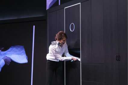 在最近的日本高新技术博览会上,这款名为laundroid的智能衣柜首次亮相于大众面前。展示过程中,工作人员在衣柜里面放入了一件白衬衫,没过一会儿,它就自己叠好了,而且异常平整。