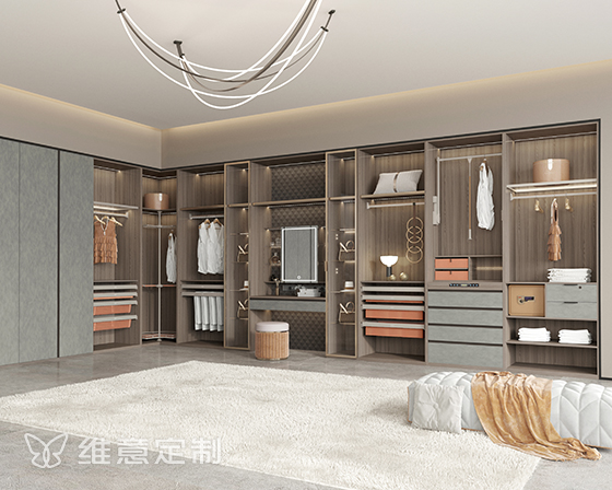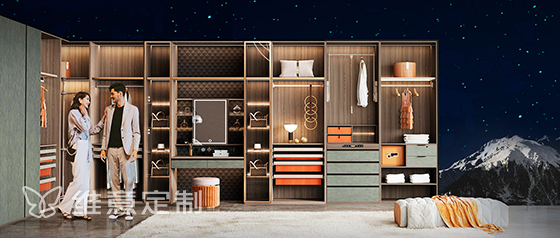 维意定制研究团队,经过严厉挑选,角逐近百家供应商后,依据多年累计的大数据系统,最终选定了香槟金+爱马仕橙皮饰,赋予衣柜一种特有的“奢侈品”气质,传递出活力的情绪,抚平劳累一天的负能量。
