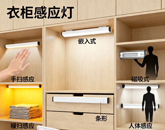 从传统的手动开关到智能化的感应灯,家居照明正在经历一场深刻的变革。衣柜感应灯的出现,不仅解决了生活中的小烦恼,还让家居生活变得更加智能和温馨。它不仅是一种照明工具,更是一种提升生活品质的方式。