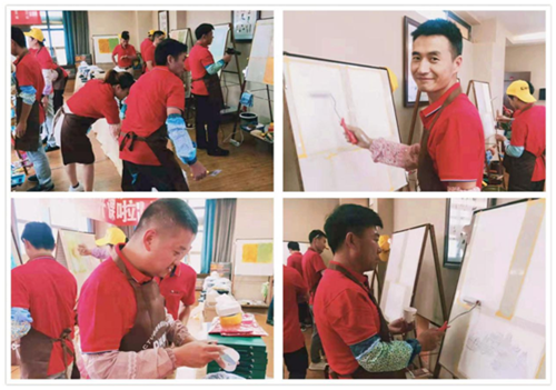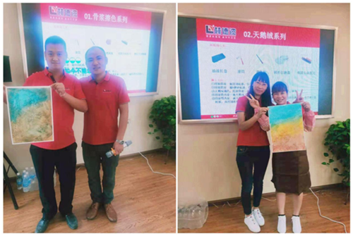 这4天3夜的学习,对学员来说不可谓不辛苦,但皇天不负有心人,辛苦的付出终将换来累累硕果。这短短的几天,不过是人生中微不足道的小片段,但这一段培训经历,会成为学员们一生难忘的记忆。他们从对艺术涂料毫不了解,到能清楚知道每个系列产品的特点,并在老师一对一、手把手的指导下,亲手做出各种各样的涂装效果,这份成就足以让人欣喜。