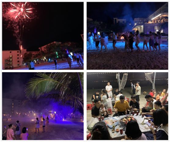 到了晚上,海边依然热闹非凡,烟花冲天绽放铺垫华美夜景,人群中载歌载舞。君匠世家团队亲密地围坐一起,品尝当地特色的海鲜盆菜,举办海滩烧烤宴和篝火晚会,相互交谈着走南往北的人生经历,不同话题的交流切入加深对彼此的了解。