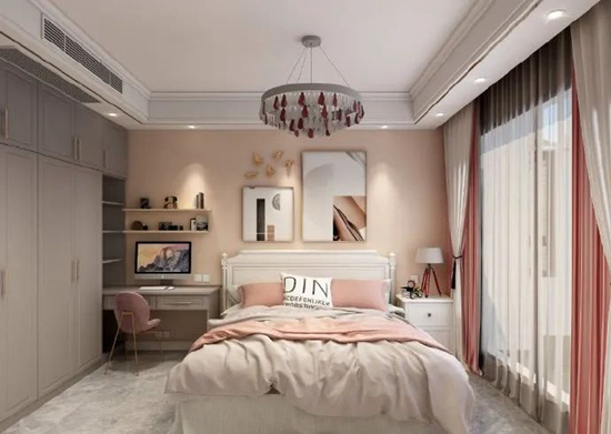 儿童房以千禧粉艺术涂料为主,搭配白色的木质家具,打造一个充满浓情蜜意的公主房,当房间被浪漫与甜蜜包裹,相信每个女孩都会是喜悦而幸福的。