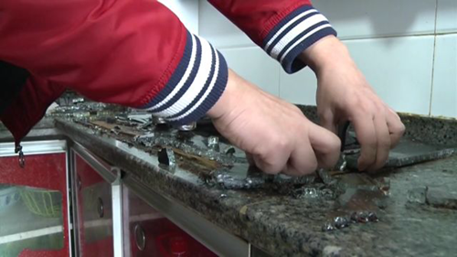记者在现场看到,由于爆裂,玻璃面板中间已经完全塌陷,边上的一个角已经完全成了碎玻璃。据杨先生介绍,这台燃气灶他已经使用6年了,虽然早已经过了质保期了,但杨先生认为,燃气灶面板发生这样的爆裂现象,生产厂家应该来看看。