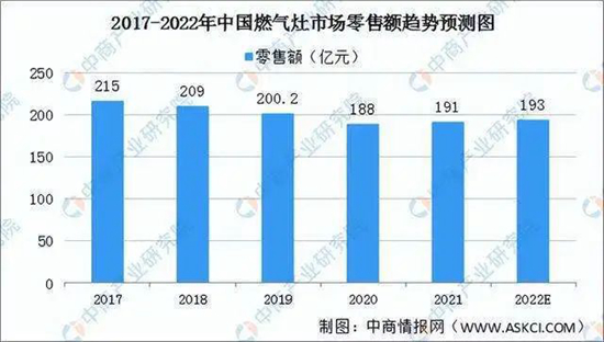 2022年:国内燃气灶市场零售额预计将达193亿元