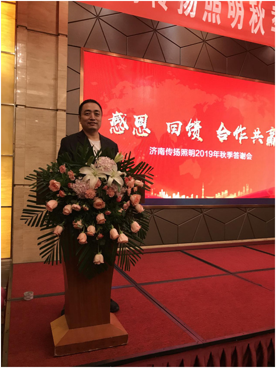 大会伊始,济南传扬照明电器有限公司温彦斌总经理致辞。传扬照明与宝客照明,双方展开厂商深度合作多年,是共同赢战山东照明市场的良好伙伴。温总经理特别提及:感恩宝客总部在产品、营销策略等各方面的大力支持,使其销售业绩获得持续增长,诚愿继续携手奋斗、紧密相随,共同让宝客照明的品牌发展之路更加灿烂辉煌。