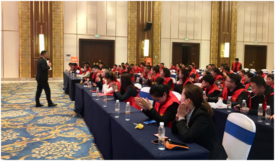 经过了午休和暖场互动,经销商家人们又恢复了精神饱满的状态,重新投入到高度学习和深度交流中。陈总继续展开“渠道拓展和终端卖货落地分享”的演讲,鼓励和指导经销商家人们在昊派“新零售”平台基础上,进一步交融线上和线下资源,积极革新终端销售方式,提高门店引流效率和服务水平。同时,陈总与经销商家人们互动频频,各方的思维火花迸射,共同为打造完善的销售流程提出了各自的疑问和解决方案。
