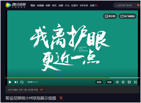 在浏览过图文并茂的新闻报道后,我们可以再欣赏下视听结合的品牌广告片。通过搜索视频,我们可以发现哥曼尼智能照明在爱奇艺、优酷、腾讯视频、好看视频等数十家人气视频网站上,都投放了大量品牌广告片,为消费者提供了一个能更直观感受产品外观设计及亮灯效果的机会。
