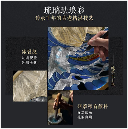 匠人手绘山峦,再研磨稀有颜料纯手工上色,精心打磨出亦画亦灯的琉璃珐琅彩作品。