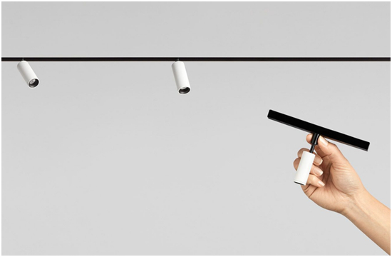GUJI古集魅影系列产品,是其品牌在无主灯照明产品应用中的经典系列,纤细的磁吸轨道,独具简洁的线条美感,能自由穿梭于空间之中,灯具因为磁性吸附在轨道上的设计使灯具能够自由推移、增减,实现多种组合,灵活多变,改变传统灯光的刻板无趣,从而丰富空间,增强空间光与影交织的效果,营造出独特的视觉美感。