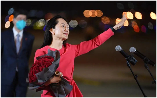 经中国政府不懈努力,9月24日,孟晚舟乘坐中国政府包机离开加拿大,回到了祖国。正如孟晚舟获释后给中央广播电视总台的一份感人至深的感言所说:在中国共产党的领导下,我们的祖国正在走向繁荣昌盛,没有强大的祖国,就没有我今天的自由。