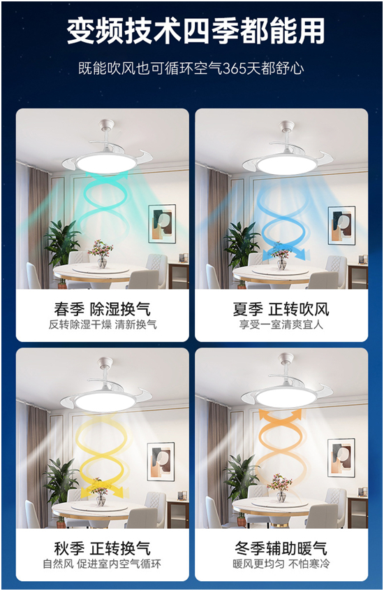 澳克士照明的这款智能隐形风扇灯,在运行时噪音控制达到了惊人的30分贝以下,实现了真正的“浅音运行”,即使在夜晚也能保证用户的安静睡眠,风轻不扰眠,为用户创造一个宁静舒适的生活环境。