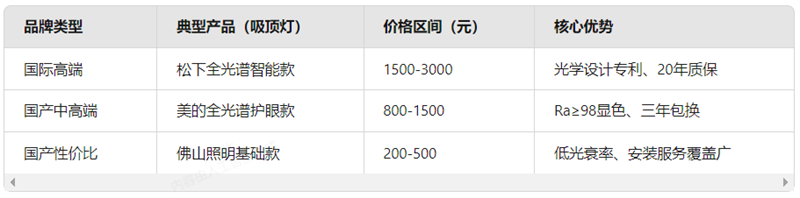 1. 家庭用户:追求性价比可选欧普、雷士的基础款,注重护眼推荐美的全光谱系列(单价低于1000元且支持米家生态)。