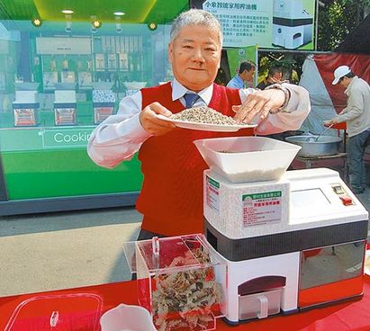 谢玉土13岁当小学徒,18岁出师自己创业,30多年来打拼包装机械业有成。国内一连串食安风暴,激起他研发家庭用榨油机的动力,22日发表这款会说话、触控面板操作的榨油机,提供消费者选择,自己吃的油、自己榨。