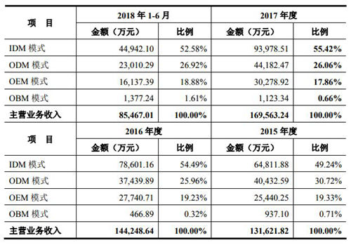 公开资料显示,松霖主营业务为花洒、淋浴系统、龙头等卫浴配件产品的研发、生产和销售。该公司主要通过IDM模式及ODM模式盈利,主要客户包括摩恩、TOTO、高仪、美标、得而达、洁碧、乐家等国际知名企业。近两年,IDM模式及ODM模式实现销售比例维持在80%左右。