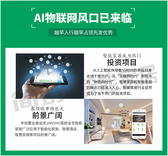 随着我国科技和经济的发展,我国的收入水平不断提高,大众的经济实力也越来越强,从而使人们对生活舒适度的要求也在不断提高,尤其增加了对生活的智能化的需求越来越大,简舒智能家居给广大投资者提供了一个广阔的发展平台,是一个非常适合投资的项目。