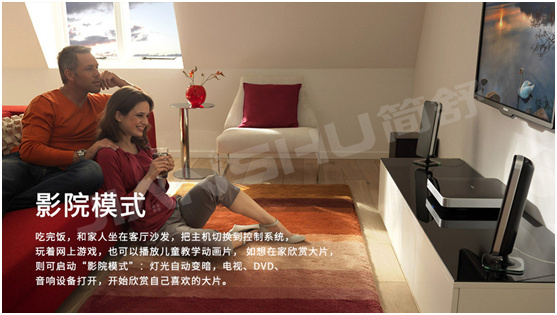 以场景化体验为核心,走进简舒智能家居体验店,各种各样的新场景让大家对什么是智能家居有了一种全新的认知,各种智能家居产品联合构建的场景体验,都产生了一种强烈的视觉冲击。如将激光电视、窗帘、灯光、空调串联成家庭影院模式,让我们在家就能够看3D电影,一边过着二人世界,一边享受着电影院般的感官冲击;还有智慧酒店、智慧办公等,都是由简舒智能家居产品串联搭建,这让原本沉闷无趣的采购过程变得更加的生动有趣。