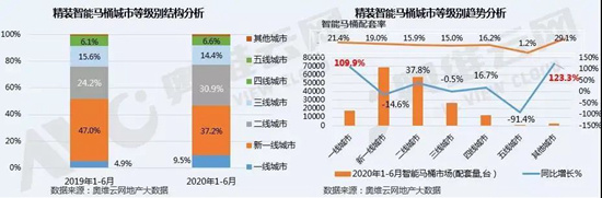 2020年1-6月精装修精装智能马桶市场配套量18.5万套, 同比增长7.9%
