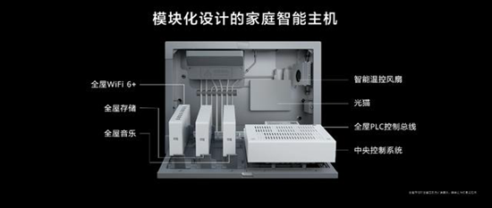 在智慧家居生活中,华为全屋智能使用一台主机来控制家里的所有智能家居,用户完全不用担心是否需要在手机上安装各种各样的APP。这台主机就像是家庭的“智慧大脑”,安装在入户门附近,取代并重构了传统弱电箱,并且搭载HarmonyOS中央控制系统,采用模块化设计,可以实时搜集华为1+8+N终端数据、传感器数据、互联网数据,通过两张网络传递到鸿蒙AI引擎。经过计算,完成多条件预判,触发相关设备和系统,将气温、湿度、光线、音乐、水温等调整到最舒适状态,达到最佳唤醒体验,真正实现多条件动态预判和主动智能。而且更加值得一提的是,华为在设计的时候,还能够将智能主机嵌入墙体内,不占用房间多余的面积,可谓是相当贴心了。
