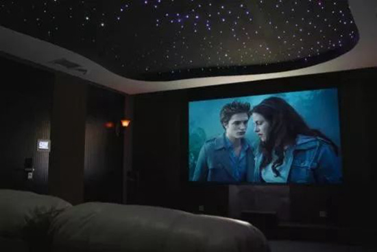 在家里就可以感受到浪漫、有科技的影视效果。在居室的任何一间房里,包括厨房、卫生间和阳台,均安装背景音乐线,通过多个音源,让每个房间都听到美妙的背景音乐。