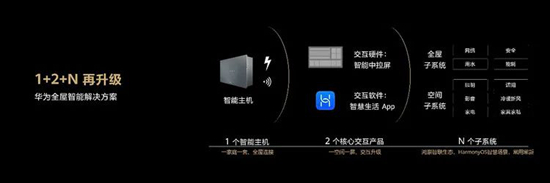 以华为的“1+2+N”为例,“1”代表的就是智能主机,它是智慧大脑要保证全屋智能的稳定、安全。而它的升级点则是体现在连接、计算、本地化存储以及本地化智能服务方面,比如算力按需扩展、自动备份家庭成员数字资产、断网可控、本地场景联动。