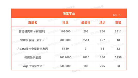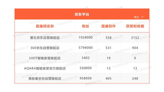 各大智能家居在各个直播平台建立了企业直播账号,尤其是淘宝直播平台,抖音平台和京东平台等,让我们一起从下图看看各品牌的情况: