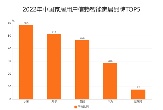 iiMedia Research(艾媒咨询)数据显示,58%的家居用户信赖小米智能家居品牌;51.5%的家居用户信赖海尔智能家居品牌;46.6%的家居用户信赖美的智能家居品牌。