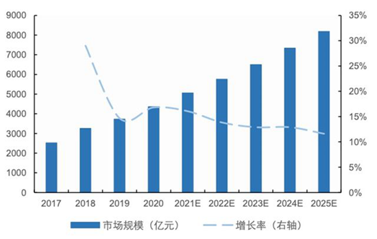再看国内市场,根据国泰君安证券研究院的数据显示,2017—2020年,我国智能家居市场规模持续扩大,由2600亿元增至5000.5亿元,预计到2025年我国智能家居市场规模预计可达8000亿元。