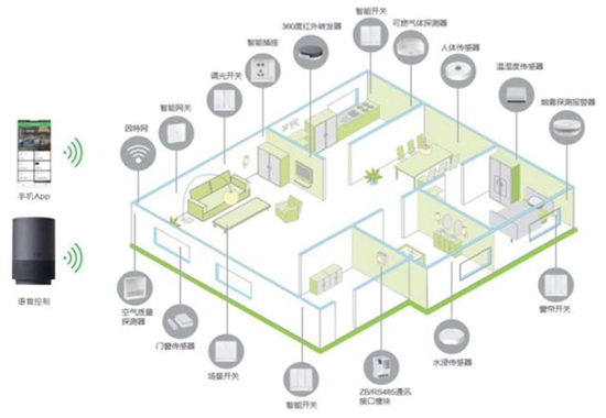 简单来说,智能家居就是通过各种技术手段,在家中实现人与设备、设备与设备之间的交互联通。如下图所示,这是典型的智能家居系统的原理图。