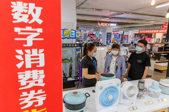图为山西运城一家商场内,消费者在选购家电。(图片由CNSPHOTO提供)