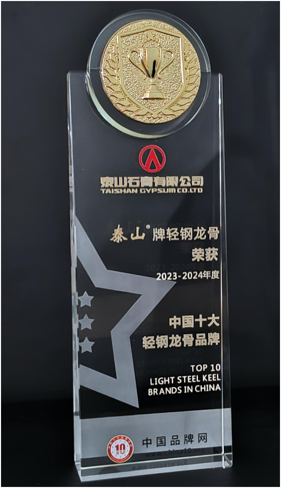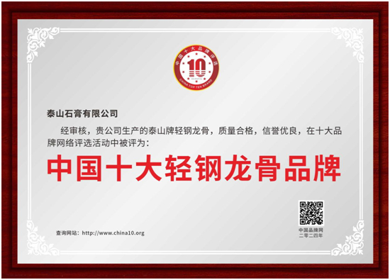 喜讯!泰山牌轻钢龙骨荣获“中国十大轻钢龙骨品牌”称号